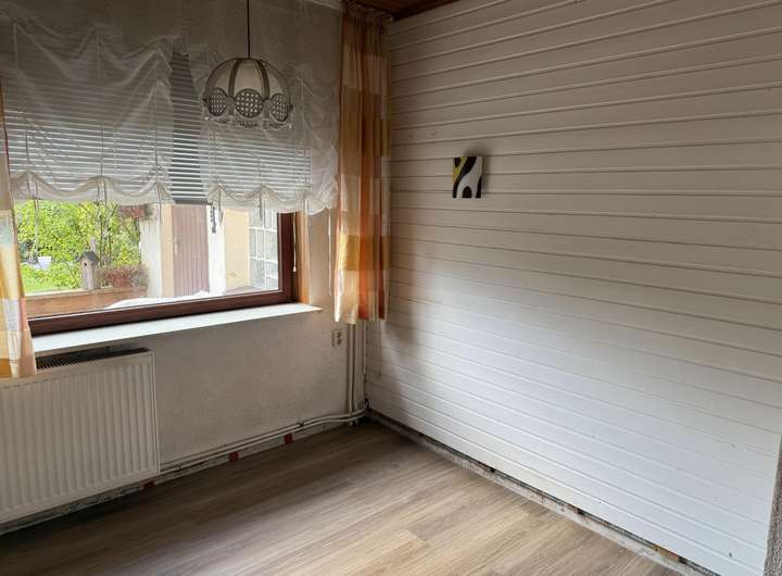 Die Wohnfläche von etwa 105 m² verteilt sich auf zwei Ebenen: Im Erdgeschoss erwarten Sie ein einladender Flur, ein großzügiges Wohnzimmer, ein separates Esszimmer, eine funktionale Küche, ein zweiter Flur sowie ein Badezimmer. Im Dachgeschoss befinden sich zwei gemütliche Schlafzimmer, ein kleines Büro, ein WC (muss noch ausgebaut werden) und ein praktischer Abstellraum. Ergänzt wird das Raumangebot durch einen Keller mit zwei Räumen inklusive der Heizungsanlage, die erst im Jahr 2019 erneuert wurde. Die Fenster sind teilweise aus Holz und teilweise aus Kunststoff gefertigt und sorgen für eine angenehme Atmosphäre im gesamten Haus.