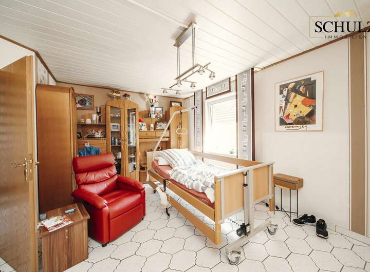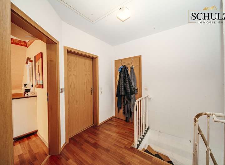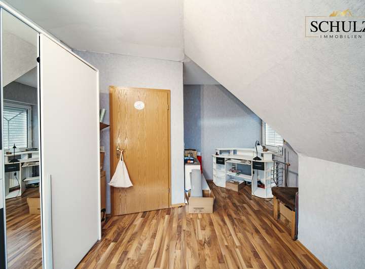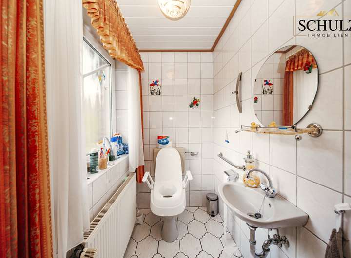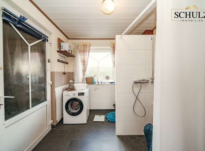 Im Erdgeschoss befinden sich zudem ein separates Gäste-WC sowie eine barrierefreie Duschmöglichkeit im Hauswirtschaftsraum – praktisch und zukunftssicher. Der 2002 angebaute, helle Arbeitsraum bietet ideale Voraussetzungen für Homeoffice oder Hobby.