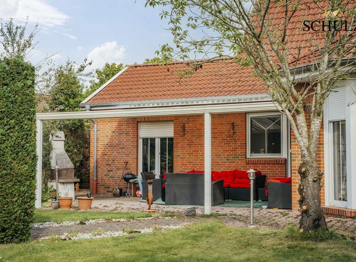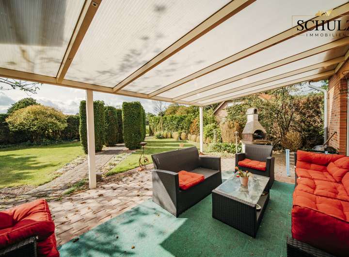 Im Außenbereich erwarten Sie eine überdachte Terrasse, ein gemütlicher Garten und ein ruhiger, nicht einsehbarer Rückzugsort. Die ruhige Randlage garantiert Entspannung im Alltag.