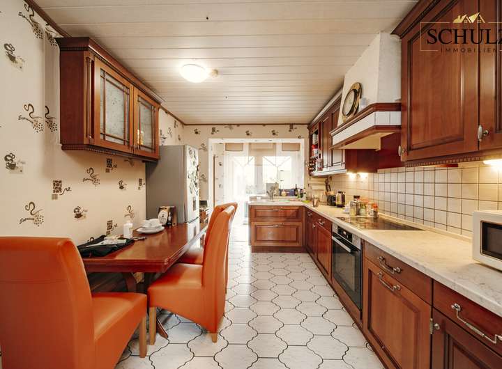 Herzstück des Hauses ist der großzügige Wohn- und Essbereich mit beeindruckender Fensterfront, die viel Tageslicht hereinlässt und den Blick in den liebevoll angelegten Garten freigibt. Die hochwertige Einbauküche ist im Kaufpreis enthalten und mit einer Fußbodenerwärmung ausgestattet – ebenso wie das Wohnzimmer und das Badezimmer im Obergeschoss, was zu jeder Jahreszeit für ein angenehmes Wohnklima sorgt.