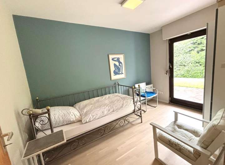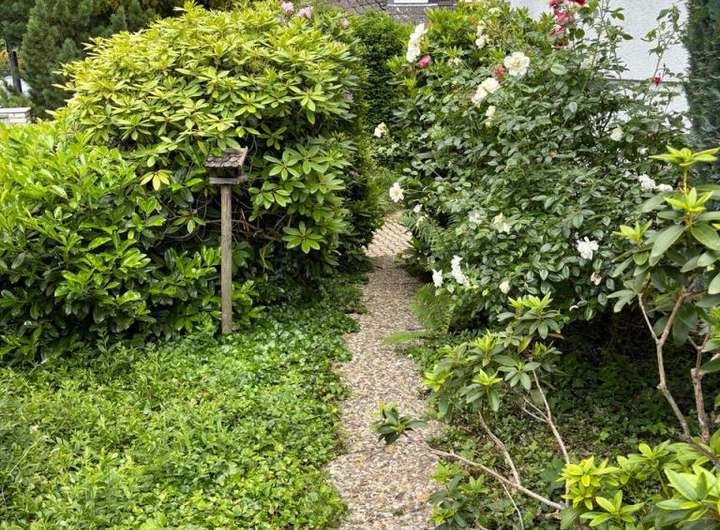 Der Garten ist pflegeleicht angelegt, mit großzügiger Rasenfläche und hat mit 724 m" eine perfekte Größe.