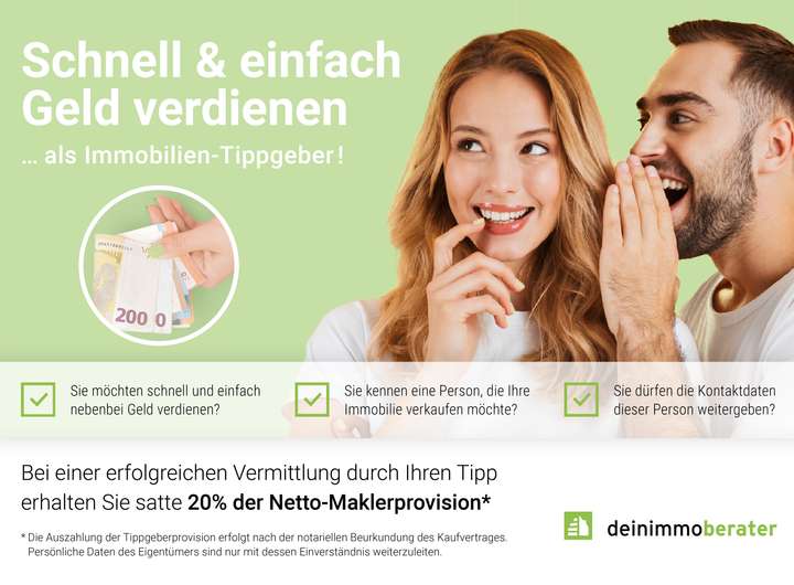 3570 inkl. MwSt. Käuferprovision 3.570€ inkl. MwSt., verdient und fällig bei notarieller Beurkundung, zahlbar an den Makler deinimmoberater. Wir haben einen provisionspflichtigen Maklervertrag in gleicher Höhe mit dem Verkäufer abgeschlossen. |