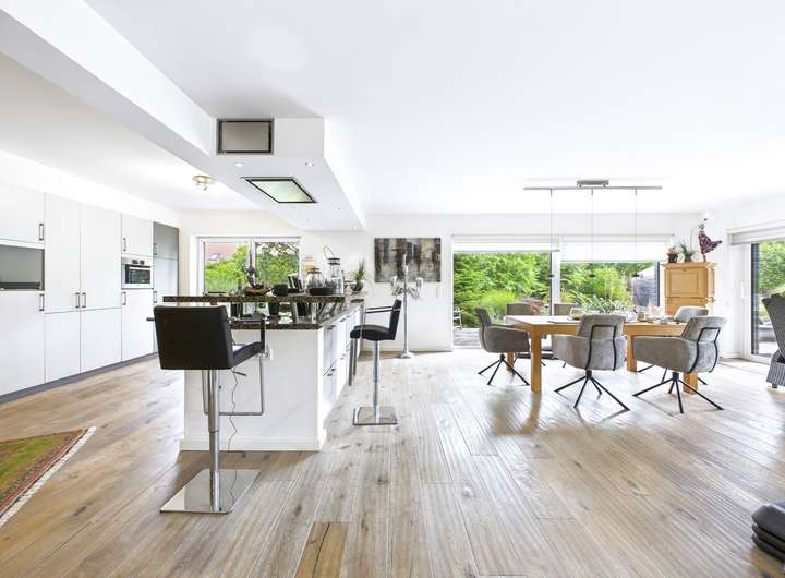 Der private Wohnbereich hebt dieses Objekt in eine ganz besondere Liga: Auf rund 268,16 m² Wohnfläche erwartet Sie eine exklusive Ausstattung mit hochwertiger Einbauküche, offener Raumgestaltung und modernen Wohnakzenten. Insgesamt sind im gesamten Anwesen vier hochwertige Einbauküchen sowie eine zusätzliche Kochnische vorhanden – optimal für die flexible Nutzung durch Wohneinheiten, Büro- oder Gewerbeflächen.