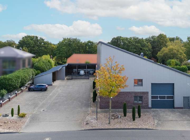 Auf einem großzügigen Grundstück von ca. 3.334 m² entstand 2013 eine moderne Gewerbehalle, die 2015 nochmals erweitert wurde. Sie bietet im Erdgeschoss rund 236,53 m² vielseitig nutzbare Fläche sowie im Obergeschoss weitere ca. 276 m² Reservefläche, die sich ideal als Lager oder für zukünftige Erweiterungen nutzen lassen.