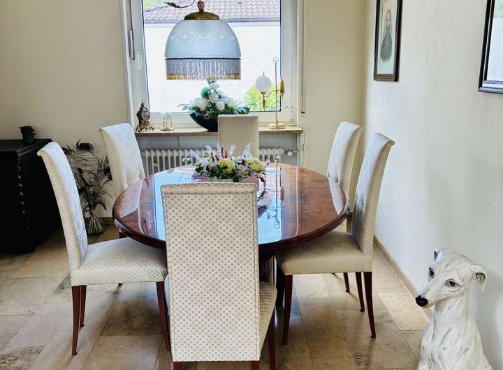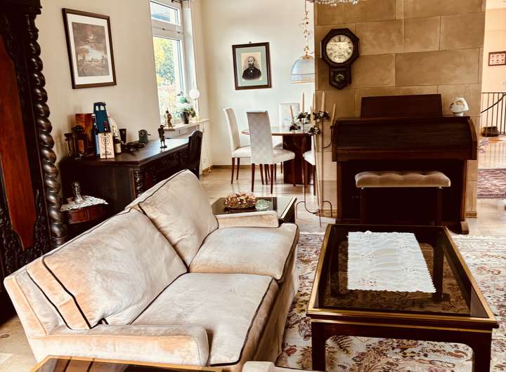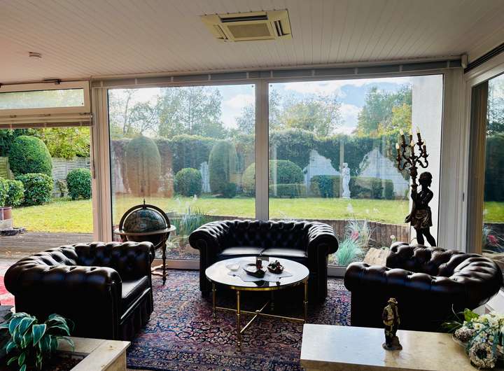 Das Haus umfasst insgesamt 7 Zimmer über zwei Etagen, die sich optimal für eine Familie oder für großzügige Wohnkonzepte eignen. Ein großer Wintergarten mit einem Fischteich inkl. Ausblick in den Garten bietet schöne Entspannung.