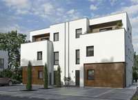 Vier Wohneinheiten, die nichts an Komfort und architektonischen Highlights vermissen lassen - das ist unser Zinshaus 7. Das dreigeschossige Gebäude mit modernem Flachdach bietet viele Optionen: Komplettvermietung für eine maximale Rendite oder Teilvermietung mit der Möglichkeit, eine der Wohneinheiten selbst zu beziehen. Jeweils zwei Wohnungen des Doppelhauses sind baugleich. Die beiden Einliegerwohnungen parterre sind über einen gemeinsam genutzten Flur mit separatem HWR erreichbar und vereinen alles, was Singles oder Paare zum komfortablen Wohnen benötigen: ein großes und lichtdurchflutetes Wohn-Ess-Zimmer, separate Küche, Schlafzimmer sowie Bad. Einen maisonetten Charakter weisen die beiden darüberliegenden Wohnungen auf, die sich jeweils über zwei Etagen erstrecken. Den Mittelpunkt des ersten Stockwerks bildet der geräumige Essbereich, an den sich die Küche direkt anschließt. Außerdem in dieser Etage: ein großes Kinderzimmer, Badezimmer sowie ein über den gemeinsam genutzten Flur zugänglicher HWR. Unterm Dach: ein großes Wohnzimmer mit Zugang zu zwei großen Balkonen sowie das Reich der Eltern - mit Schlafbereich, Ankleide- und Badezimmer.