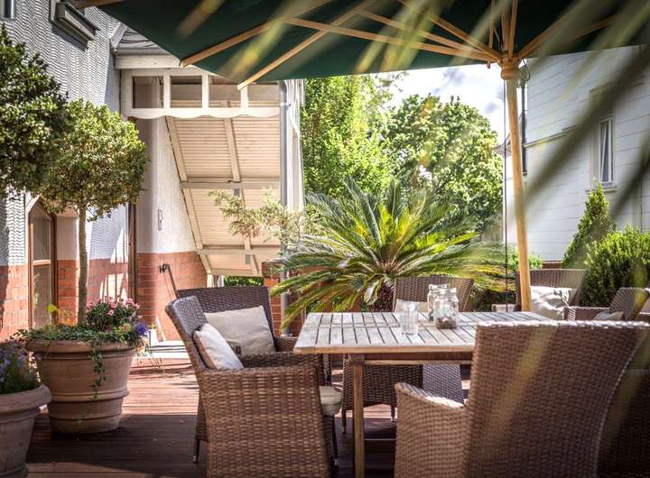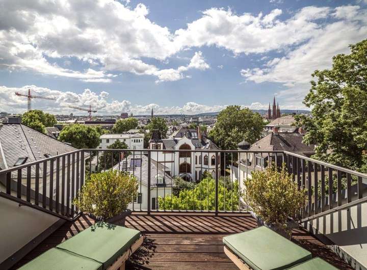 Eine Stadtvilla der Jahrhundertwende – repräsentativ, behutsam kernsaniert und technisch zeitgemäß. Klassische Stuckdecken, Kassettenfenster und edle Holzböden treffen auf Komfort wie Aufzug, Klimatisierung und moderne Sicherheits- sowie Haustechnik. Großzügige Wohnsalons öffnen sich zu weitläufigen Terrassen mit Blick über Wiesbaden; der gepflegte Garten bietet maximale Privatsphäre – in begehrter, ruhiger Citylage nur wenige Schritte zur Wilhelmstraße. Architektur & Atmosphäre Die Villa inszeniert Großzügigkeit: hohe Decken, elegante Stuckaturen und historisches Tischlerhandwerk, ergänzt durch klare Linien und zurückhaltende, wertige Oberflächen. Die Wohn- und Gesellschaftsräume fließen – vom Entree über die Salons bis auf die sonnigen Terrassen. In den oberen Etagen schaffen private Suiten mit eigenen Bädern und Ankleiden Rückzugsorte auf Niveau eines Boutique-Hotels. Ob Morgenkaffee mit Fernblick oder sommerliche Dinnertafel im Freien – die Außenflächen werden zum zweiten Wohnzimmer. Nutzung & Mehrwert Ob repräsentatives Familienwohnen, Wohnen & Arbeiten unter einem Dach oder Mehrgenerationen-Konzept: Die klare Grundrisslogik, der Aufzug und die tageslichthellen Zusatzflächen eröffnen vielfältige Optionen – sofort nutzbar, ohne Sanierungsaufwand.