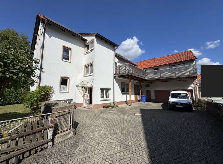 Das Gebäude ist unterkellert und bietet daher zusätzliche Nutzfläche. Es verfügt über eine gepflasterte Hoffläche, einen kleinen Garten und 2 Garagen.
