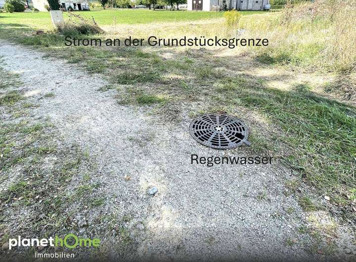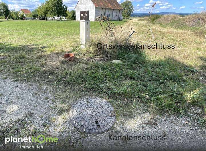 Anschlüsse Strom, Ortswasser und Kanal sind bereits an der Grundstücksgrenze vorhanden.