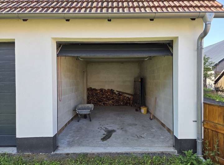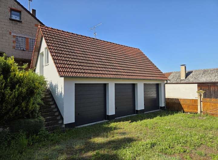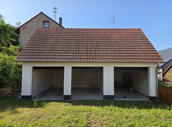 Bereits vorhanden ist eine Dreifachgarage, die sich in einem sehr guten Zustand präsentiert und vielfältige Nutzungsmöglichkeiten – vom Stellplatz über Lagerfläche bis hin zur temporären Bauunterkunft bietet.