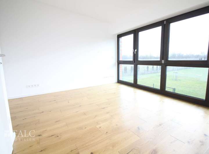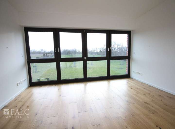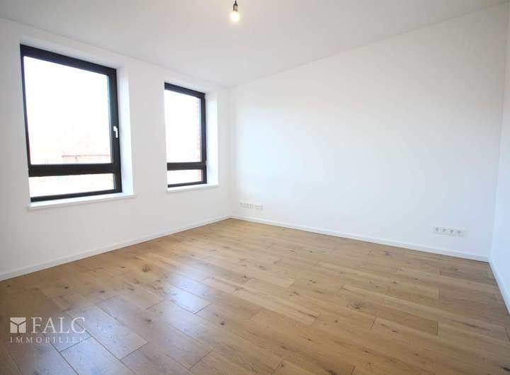 Doppelverglaste Holzfenster halten die Wohnung warm und tragen unter anderem zu einem geringen Energieverbrauch bei. Alle Fenster sind mit elektrischen Rollläden ausgestattet.