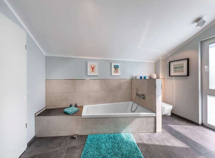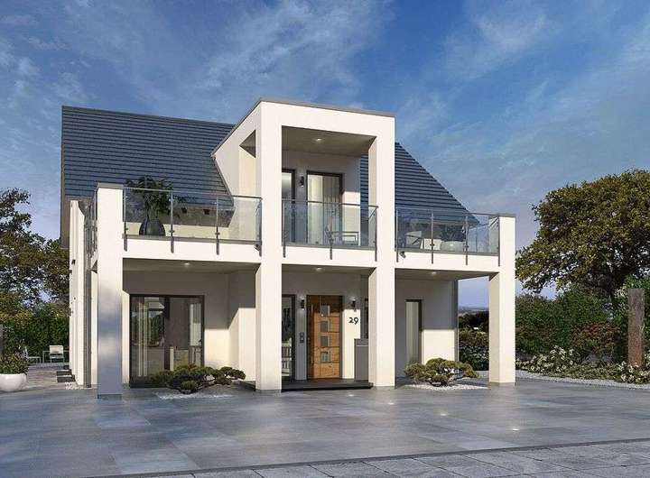 Unser Designhaus Hampton lehnt sich in Architektur und Ausstattung an den Hamptons-Style an, der seinen Namen dem berühmtesten amerikanischen Strandabschnitt Hampton zu verdanken hat. Hier treffen maritimer Stil und die extravagante New Yorker Schule aufeinander - und verschmelzen zu einer Einheit. Schlichte Formen gepaart mit hochwertigen Materialien und klaren Linien, das ist der Hamptons-Style und das ist auch unser Designhaus. Highlights sind die beiden großen Balkone auf den Längsseiten, von wo man abends bei einem Glas Wein den Blick in die Ferne schweifen lassen und ein Hauch von maritimem Lebensstil genießen kann. Perfekt durchdacht und klar in der Formgebung ist auch das Innere. Mittelpunkt ist der große, offene Wohn-Ess-Koch-Bereich mit Erker. Außerdem parterre: Büro, HWR und Gäste-WC. Im Obergeschoss: Elternschlafzimmer mit sich anschließender Ankleide und großem Bad. Gegenüber befindet sich das Reich der Kinder, die ebenfalls über ein eigenes Bad verfügen. Und das Beste: Der Zutritt zu einem der beiden Balkone ist aus jedem Zimmer möglich. Hampton: kein Haus, ein Lebensgefühl.