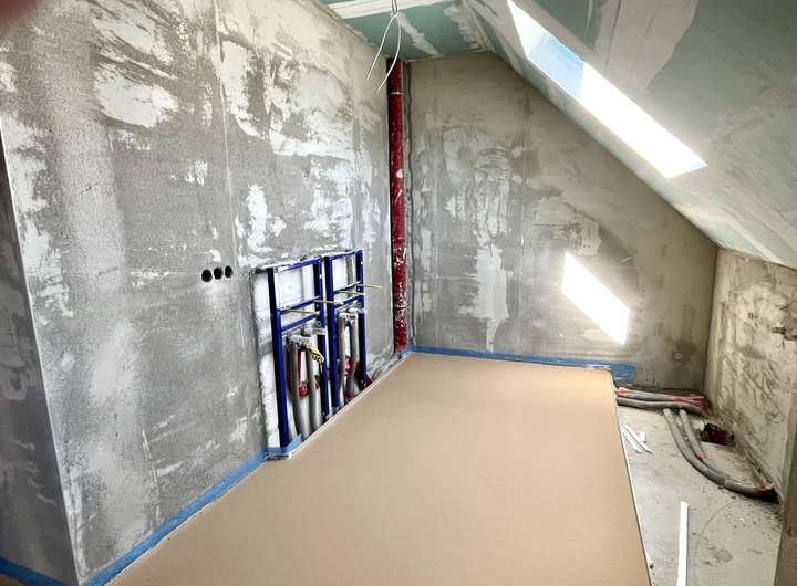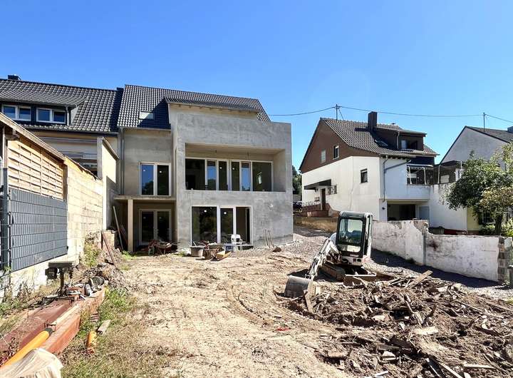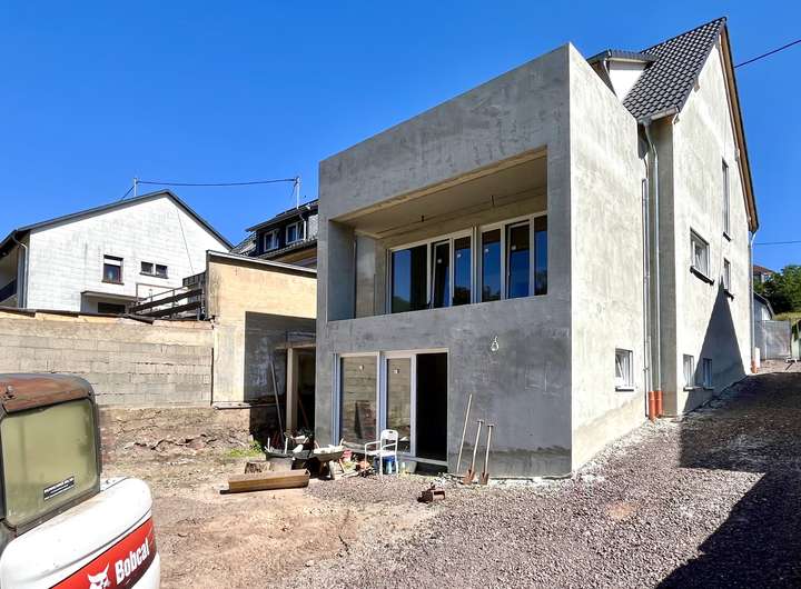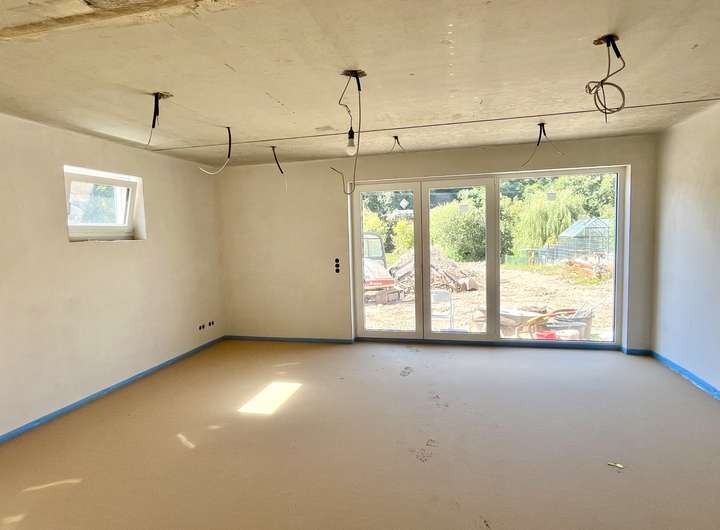 Neubau! Das Haus ist fertiggestellt bis auf Boden- und Wandbeläge, Bäder-Ausstattung und Wärmepumpe - insgesamt ein hochwertig gebautes Haus auf der Höhe der Zeit mit hervorragenden energetischen Eigenschaften!