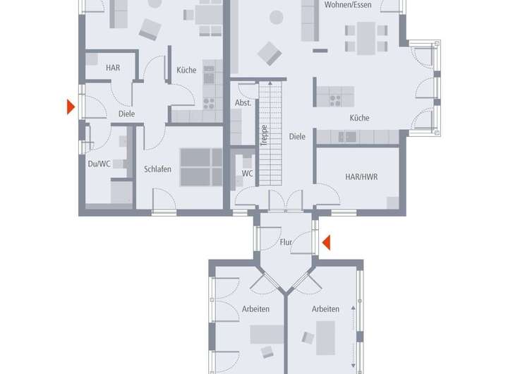Hier ist alles möglich: Generationenhaus, zusätzliche Mieteinnahme oder Büro Tür an Tür. Unsere Bauherren entscheiden. Das großflächig angelegte Haus steht für Wohnen im großen Stil. 240 m² perfekt durchdachter und lichtdurchfluteter Wohnraum lassen der Fantasie freien Lauf.