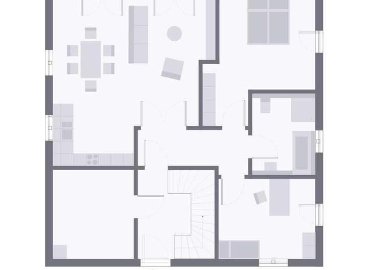 Auch im Inneren hat das 2-Generationen-Haus den Bewohnern eine Menge zu bieten. Die großzügige Diele im Eingangsbereich teilen sich alle Generationen. Zudem besteht hier die Möglichkeit, eine gemeinsame Waschküche beziehungsweise einen Hauswirtschaftsraum einzurichten. Anschließend führt der Weg jeden in sein eigenes Reich. Auf beiden Ebenen ist der große Wohn-Ess-Kochbereich der Mittelpunkt der Wohnung. Neben einem geräumigen Schlafzimmer mit angeschlossenem Ankleideraum und einem Tageslichtbad befindet sich hier noch ein weiterer Raum. Dieser kann als Kinder- oder Gästezimmer, aber auch als Büro oder Hobbyraum verwendet werden. Der perfekte Ort zum Wohlfühlen. Der perfekte Ort, um mehrere Generationen unter einem Dach zu vereinen.......