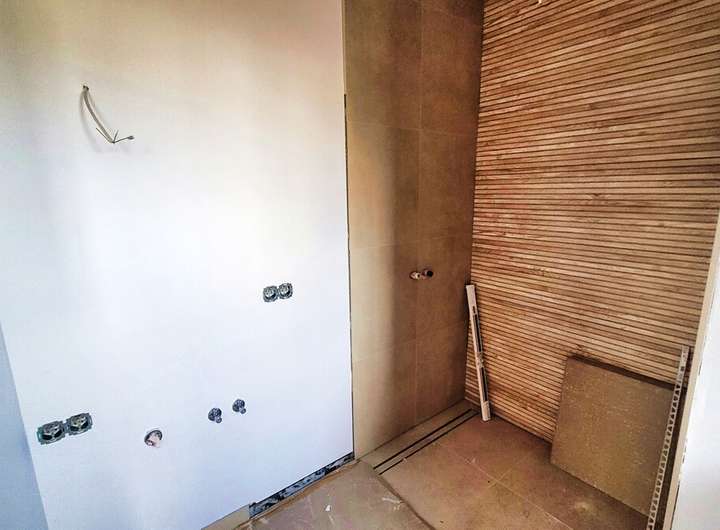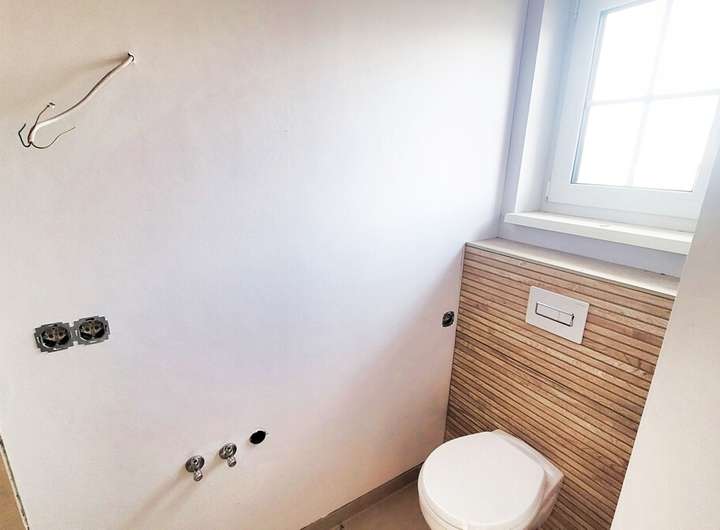 elektrische Steuerung vorbereitet (Kabelschlauch in Wand plus elektr. Taster vorgerüstet, fehlt nur Rolladenmotor mit Kabel)