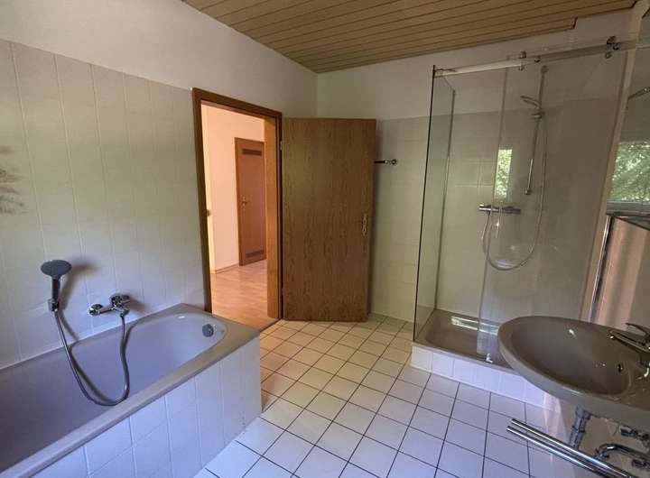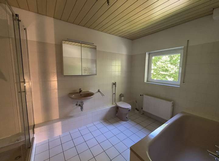 Neuer Laminatboden im gesamten Haus. Komplett frisch gestrichen. Großes Tageslichtbad mit Badewanne und Dusche, sep. Gäste-WC.