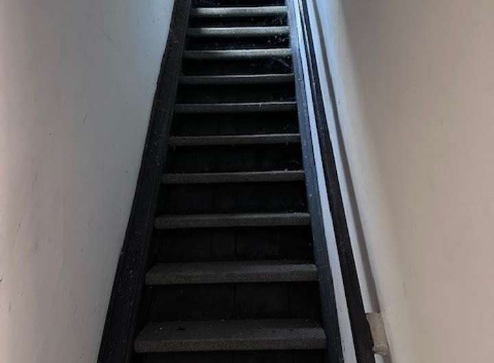 Wenn man den schönen vorderen Raum mit der hohen Deckenhöhe und dem großen Fenster zur Straßenfront (derzeit Sauna und Tauchbecken von ca. 25 m², das WC und den Flur) mit dazu rechnet und den großen und hohen Spitzboden mit ca. 24 m² mit einbezieht, dann kommt man auf eine Wohnfläche von ca. 486,70 m² und eine Gesamtfläche von ca. 539,52 m².