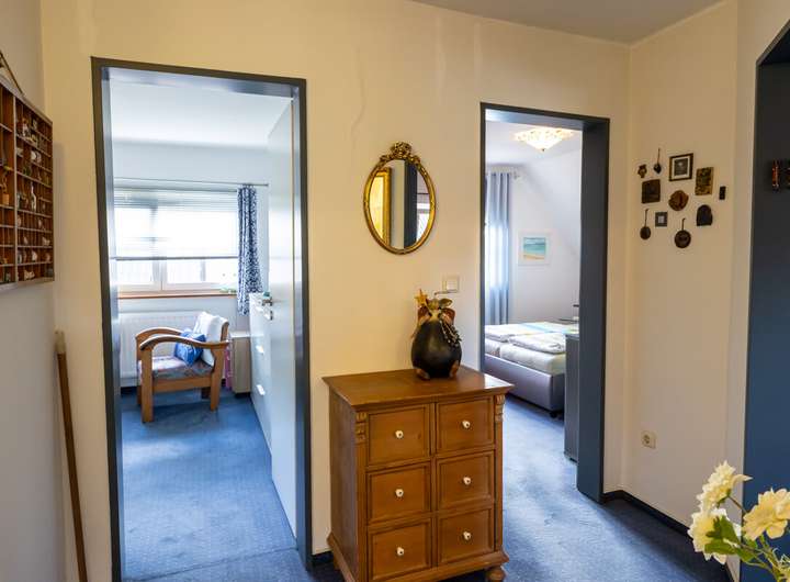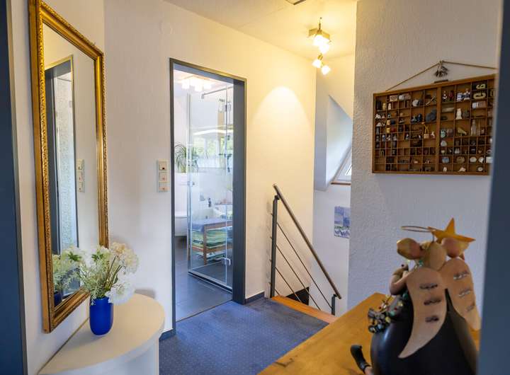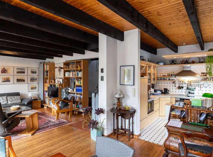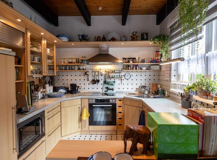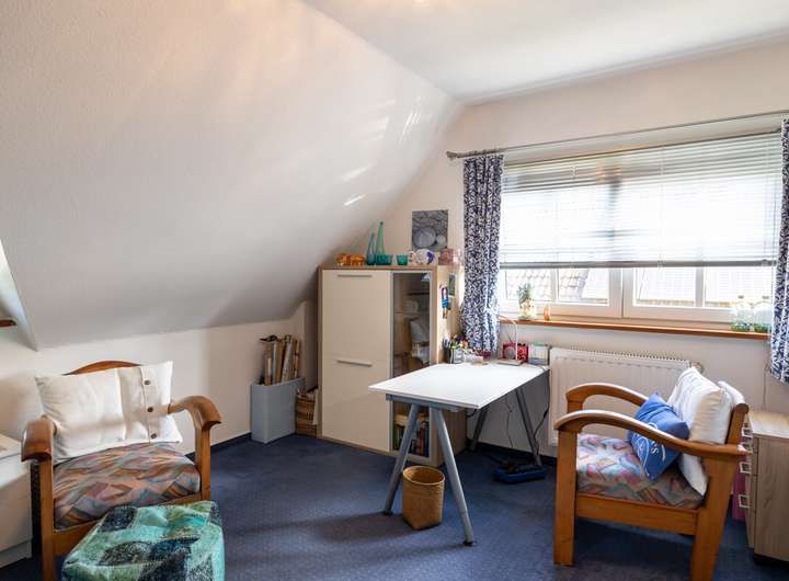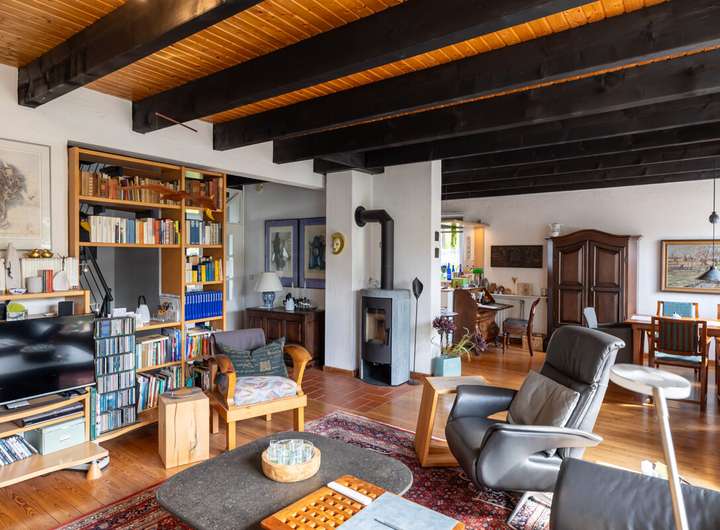 Dieses gepflegte Einfamilienhaus überzeugt mit einer durchdachten Raumaufteilung, laufend modernisierter Ausstattung und einem großzügigen Garten, der zum Verweilen einlädt. Im Erdgeschoss erwartet Sie ein helles Wohnzimmer mit Kaminofen und Zugang zur überdachten Terrasse, eine offene Küche, ein praktischer Abstellraum sowie ein Gäste-WC. Das Obergeschoss verfügt über drei Zimmer und ein modernisiertes Vollbad (2011), das ideal für Familien geeignet ist. Im Kellergeschoss stehen Ihnen ein vielseitig nutzbares Zimmer, das sich sowohl als Werkstatt wie auch als Abstellraum eignet, sowie ein Hauswirtschaftsraum zur Verfügung. Zusätzlich bietet der ausgebaute Dachboden mit Dachdämmung viel Platz für Lagerung oder kreative Ideen. Das Haus wurde regelmäßig modernisiert: Die Gas-Brennwertheizung stammt aus dem Jahr 2012, das Gäste-WC wurde 2014 erneuert, die Fenster 2022 ausgetauscht und ein Kaminofen im Jahr 2023 ergänzt. Der Gasverbrauch lag 2024 bei lediglich 9.891 kWh und unterstreicht die gute Energieeffizienz. Das großzügige Grundstück bietet einen traumhaften Garten mit separatem Bereich für Holz und Kompost, ein Gartenhaus sowie eine überdachte Terrasse mit Beschattung. Für Fahrzeuge stehen ein Carport rechts neben dem Haus und ein separater Fahrrad-Carport links bereit. Ein Glasfaseranschluss liegt bereits im Haus und sorgt für zukunftssicheres Internet. Dieses Haus vereint behagliches Wohnen, praktische Extras und einen wunderschönen Außenbereich – ideal für alle, die ein gepflegtes Zuhause mit viel Platz zum Leben und Wohlfühlen suchen.