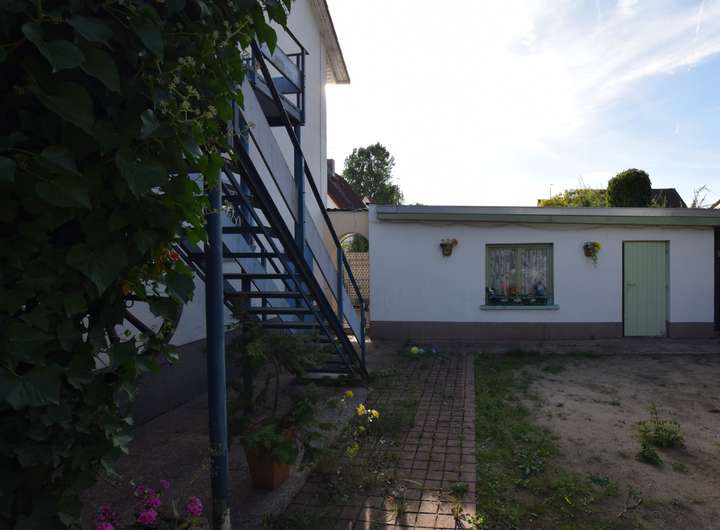 Zum Haus gehören außerdem ein von außen zugänglicher Lagerraum, ein angelegter Garten, eine Garage, ein Carport sowie eine Einfahrt mit ausreichend Parkmöglichkeiten.