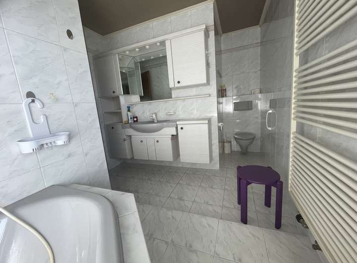 Im Obergeschoss erwarten Sie fünf Schlafzimmer, ein großes Badezimmer mit komfortabler Eckbadewanne, ein separates WC sowie ein separater Duschraum. Ein Teil des Obergeschosses kann als eigenständiger Bereich mit eigenem Zugang abgetrennt werden und eignet sich hervorragend zur Vermietung oder als Einliegerwohnung.