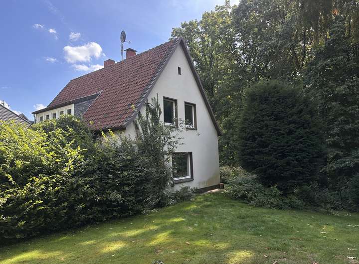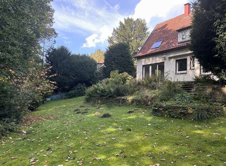 mit einem leerstehenden Einfamilienhaus aus dem Jahr ca. 1950 bebaut,