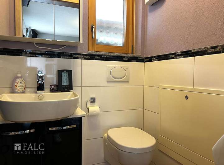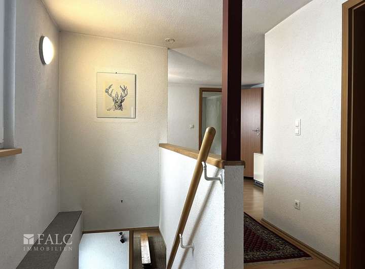 Das neuere Wohnhaus wurde 1999 erbaut und bietet ca. 114 m² Wohnfläche. Im Erdgeschoss befinden sich ein geräumiges Wohn- und Esszimmer mit Zugang zur Terrasse, eine separate Küche, ein Abstellraum, eine Gäste-WC sowie ein Flur. Im Obergeschoss stehen zwei helle Zimmer zur Verfügung, eines davon mit eigenem Balkon. Ergänzt wird das Stockwerk durch ein Tageslichtbad mit Badewanne und Dusche sowie ein separates WC. Das Dachgeschoss ist bereits vorbereitet und bietet Ausbaupotenzial für zusätzlichen Wohnraum. Das Haus ist teilweise mit elektrischen Rollläden ausgestattet und voll unterkellert.