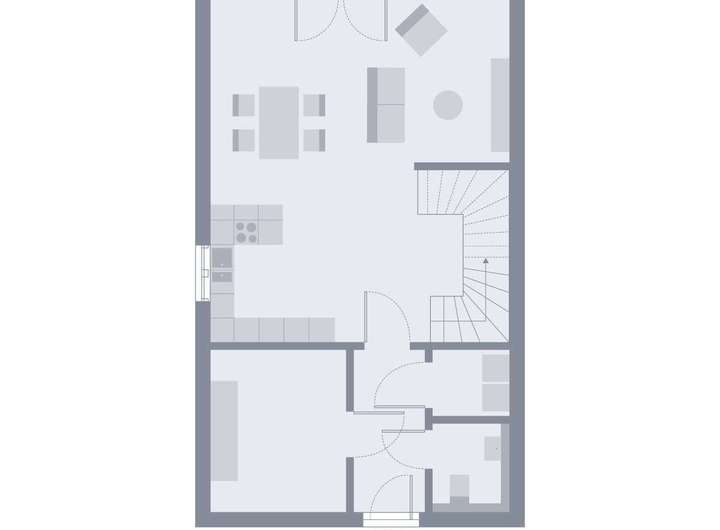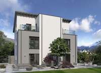 Eine geringe Grundfläche bei maximalem Wohnkomfort - das bietet unser Doppelhaus 08 und eignet sich damit perfekt für kleine Grundstücke. Das dreigeschossige Gebäude mit Pultdach überzeugt nicht nur durch sein durchdachtes Raumkonzept, sondern auch mit einer außergewöhnlichen Architektur, die sich bereits in der Fassadengestaltung zeigt: Durch die symmetrische Bauweise mit einem erkerartigen Vorsprung, der die beiden baugleichen Wohneinheiten optisch voneinander trennt, entstehen im zweiten Obergeschoss sichtgeschützte Balkone, die nach einem anstrengenden Tag zum Relaxen einladen. Ein Ort zum Zusammenkommen, Kochen, Austauschen und Genießen ist das Erdgeschoss mit offenem Wohn-Ess-Koch-Bereich. Zudem im Parterre: HAR, HWR und Gäste-WC. Das erste Obergeschoss ist zugleich das Reich der Kinder: Zwei Zimmer und ein großes Bad stehen hier zur Verfügung. Unter dem Pultdach haben die Eltern ihren Rückzugsort - mit Schlaf- und Arbeitszimmer und direktem Zugang zum Balkon. Mehr Wohnen geht nicht.
