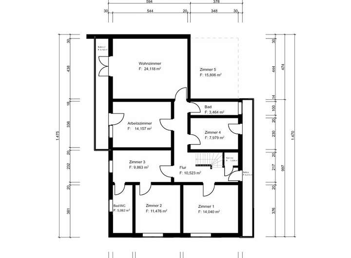 Im Obergeschoss befinden sich Sechs Zimmer, die vielseitige Nutzungsmöglichkeiten bieten – Schlafzimmer, Arbeitszimmer, Gästezimmer oder Kinder-/ Jugendzimmer. Zusätzlich gibt es ein Badezimmer und ein Gäste-WC, was insbesondere bei Mehrgenerationen- oder Mehrparteien-Belegung von Vorteil ist. Zwei der Balkone laden zu entspannenden Außenflächen im Jahresverlauf ein.