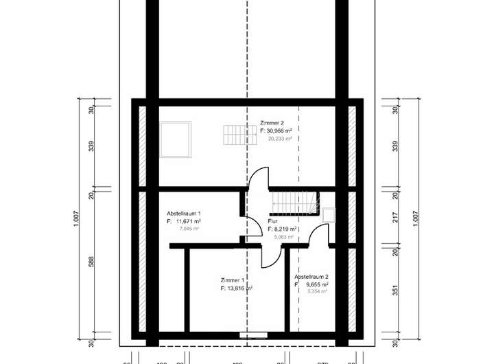 Im Dachgeschoss sind zwei weitere große Zimmer und zwei Abstellkammern schaffen zusätzlichen Stauraum oder flexible Nutzflächen, beispielsweise für Home-Office, Atelier oder Gästeunterbringung.