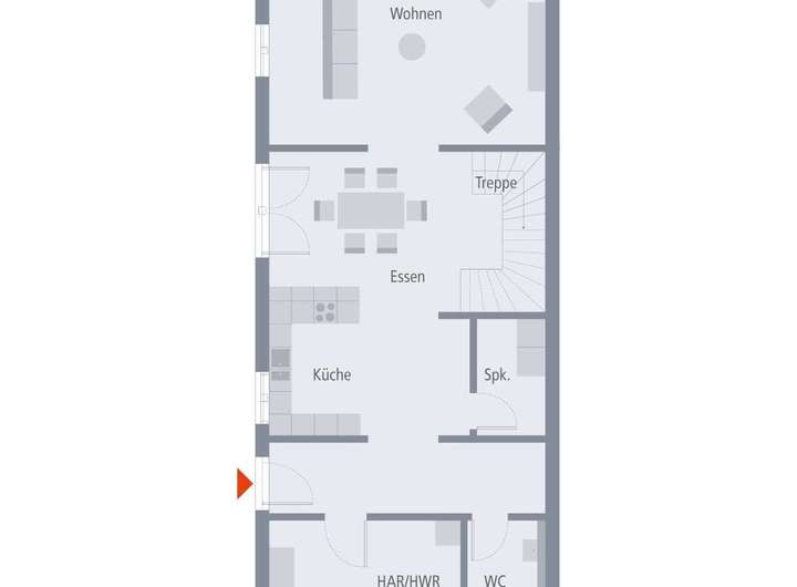 Schon das Erdgeschoss besticht durch seine großzügige Raumaufteilung: Der offen gehaltene Koch-Ess-Bereich sowie der sich unmittelbar anschließende Wohnbereich überzeugen mit seiner Größe von mehr als 60 m2. Die großen Fensterfronten ermöglichen einen direkten Zugang zum Garten und sorgen für einen Rundum-Lichteinfall. Abgerundet wird das Raumangebot im Erdgeschoss durch eine praktische Speisekammer direkt neben der Küche, einen Hauswirtschaftsraum sowie ein Gäste-WC. Im ersten Obergeschoss befindet sich der Rückzugsort für die Kinder: Neben zwei großen Zimmern gibt es eine Galerie, ein Bad sowie einen Abstellraum. Unmittelbar unterm Satteldach: das Reich der Eltern. Diese verfügen über ein knapp 22 m² großes Schlafzimmer sowie ein Badezimmer mit Wanne, Dusche und WC. Mehr Wohlfühlambiente geht nicht.