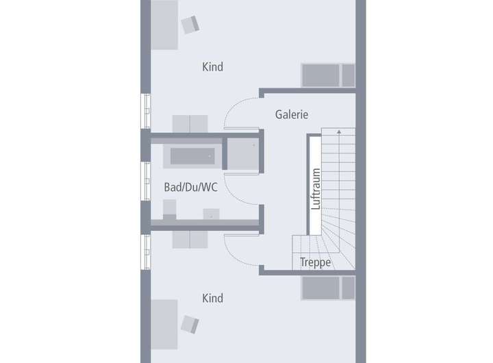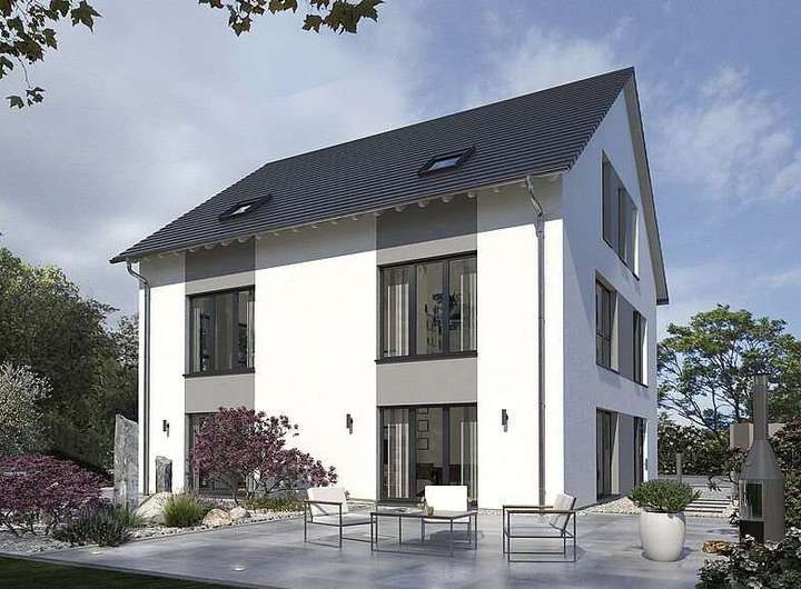 Ein Haus, drei Etagen, zwei Einheiten und eine Menge Platz zum Leben, Relaxen und Genießen - das ist unser Doppelhaus 04. Zwei Parteien stehen hier unter dem zeitlos-eleganten Satteldach jeweils circa 190 m² zur Verfügung. Im Erdgeschoss befinden sich neben einer großen Küche und angeschlossenem Esszimmer ein geräumiger Hauswirtschaftsraum sowie ein Gäste-WC. Das erste Obergeschoss verbindet Wohn- und Rückzugsort auf harmonische Weise: Über die Treppe geht es direkt ins lichtdurchflutete Wohnzimmer. Auf der Rückseite des Stockwerks: das Elternschlafzimmer mit abgetrenntem Dusch-WC. Unter dem Dach befindet sich die Wohlfühloase der Kinder. Neben der Galerie und einem Bad gibt es hier zwei extra große Kinderzimmer.