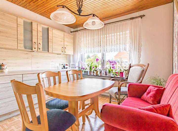 Dieses großzügige Zweifamilienhaus aus dem Jahr 1933, mit Anbau einer zweiten Wohneinheit aus dem Baujahr 1980, bietet viel Platz für Familien, Handwerker und alle, die Gestaltungsspielraum suchen. Auf einem rund 2.500 m² großen Grundstück erwarten Sie zwei getrennte Wohneinheiten mit einer Gesamtwohnfläche von ca. 216 m². Die Hauptwohnung erstreckt sich über ca. 173 m² und überzeugt mit großzügigen Räumen und einer klassischen Aufteilung, die sich individuell modernisieren lässt. Die zweite Wohneinheit umfasst ca. 94 m² und eignet sich ideal zur Vermietung oder für Mehrgenerationenwohnen. Zusätzlich besteht im Dachgeschoss eine attraktive Ausbaureserve, die weiteres Potenzial für zusätzlichen Wohnraum bietet. Zum Haus gehören eine Garage sowie ein Carport, sodass ausreichend Stellfläche für mehrere Fahrzeuge vorhanden ist. Beheizt wird die Immobilie derzeit über eine Ölheizung, die erneuert werden muss – hier haben Sie die Möglichkeit, moderne und effiziente Technik einzubringen.