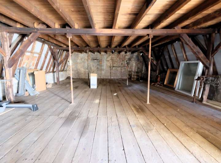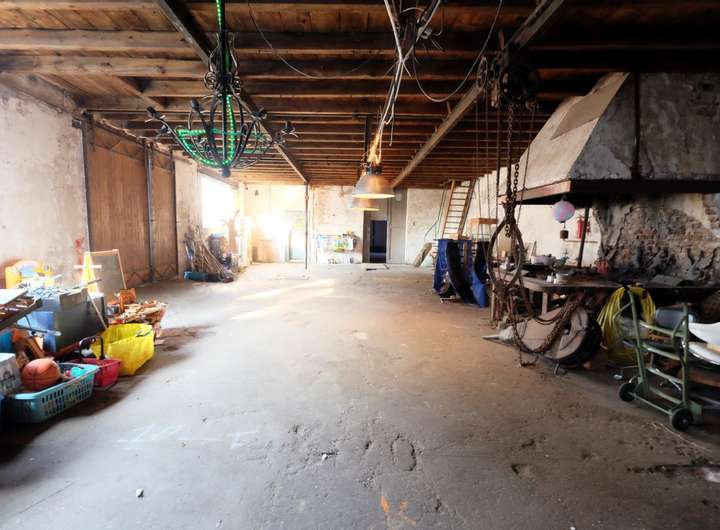 Im Hinterhaus sind im Erdgeschoss die Schmiede und darüber ein überaus großer Abstelldachboden untergebracht.