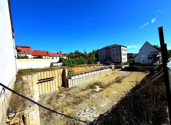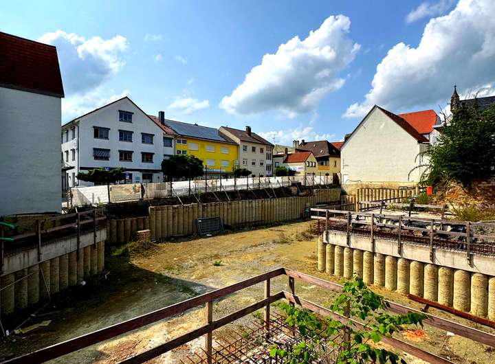 Im Rahmen der bereits erfolgten Tiefbauarbeiten wurde auf dem Grundstück eine großflächige Baugrube professionell errichtet. Die Böschungssicherung erfolgte durch den Einbau von massiven Betonbohrpfählen mit Bewehrung, die das Grundstück statisch für eine Tiefgarage unterfangen. Diese aufwändigen Maßnahmen stellen eine wertvolle Vorleistung dar und ermöglichen es dem Erwerber, das Bauvorhaben zügig fortzuführen – ohne weitere Erd- oder Gründungsarbeiten im Tiefbereich.