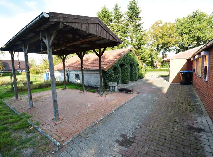 Auf einer Hoffläche von ca. 5.520 m² steht das Wohnhaus mit Scheune und diverse Stallungen. Die Wohnfläche beträgt ca. 114 m² und die Nutzfläche der Scheune ca. 100 m².