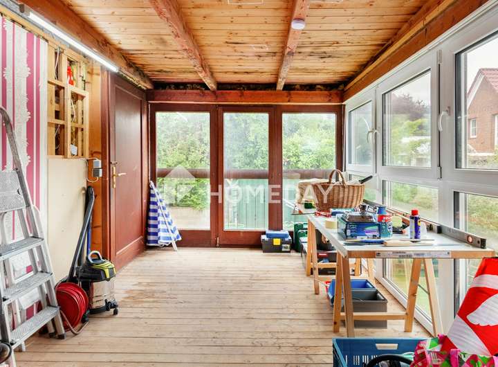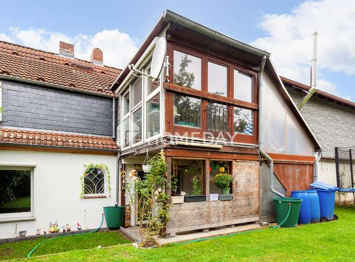 Diese gepflegte Doppelhaushälfte, ursprünglich im Jahr 1960 erbaut und durch Anbauten in den Jahren 1973 und 1984 erweitert, bietet eine großzügige Wohnfläche von rund 180 Quadratmetern, verteilt auf zwei Etagen. Mit insgesamt sechs Zimmern, zwei Wintergärten und einem durchdachten Grundriss ist sie das ideale Zuhause für Familien, die Wert auf Platz, Komfort und eine angenehme Wohnatmosphäre legen.