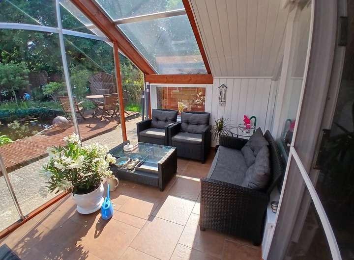 Der Garten bietet Ihnen ausreichend Fläche zum Entspannen und für das Hobbygärtnern. Zu einem Sprung ins kühle Nass lädt der Gartenteich an heißen Tagen ein.