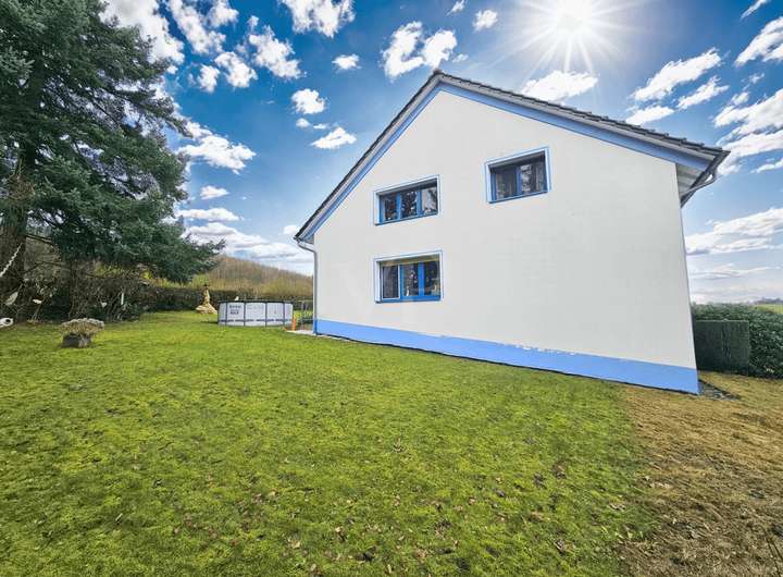 In einer der schönsten Lagen des hinteren Hochtaunus, direkt am Feld- und Waldrand, genießen Sie einen unverbaubaren Blick über die sanften Hügel der Region.