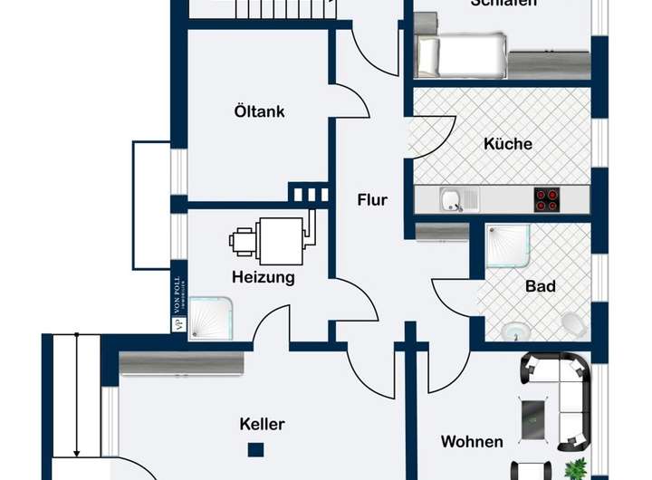 Bei der Souterrainwohnung, der Erdgeschosswohnung, dem Treppenhaus, der Heizungsanlage und den Garagen steht nach dem Kauf eine Modernisierung an.