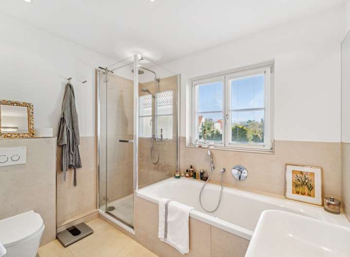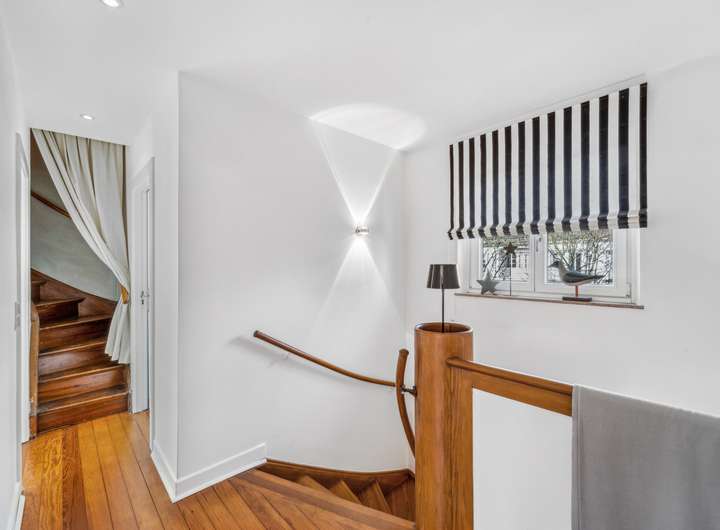 Diese charmante Doppelhaushälfte aus dem Jahr 1930 bietet auf einer Wohnfläche von ca. 163,6 m² und einem Grundstück von ca. 326 m² ausreichend Platz für Familien und Paare, die Wert auf stilvolles Wohnen legen. Mit insgesamt 5 Zimmern besticht das Objekt durch eine gelungene Raumaufteilung, die sowohl Großzügigkeit als auch Funktionalität vereint. Im Erdgeschoss erwarten Sie eine einladende Diele, 2 Zimmer mit bodentiefen Fensterelementen sowie ein WC. Außerdem sind im Erdgeschoss ein Vorratsraum, ein Hauswirtschaftsraum und ein Versorgungsraum untergebracht. Eine geschwungene, historische Holztreppe führt in das Obergeschoss, welches den rund 45 m² großen Wohn- und Essbereich sowie eine Küche mit Einbauküche beherbergt. Hier sorgt die gehobene Ausstattung für ein angenehmes Wohnambiente. Der offene Raum bietet verschiedene Möglichkeiten zur Gestaltung und verleiht dem Haus eine warme und einladende Atmosphäre. Eine Loggia, auf der man auch an ungemütlichen Tagen geschützt sitzen kann, rundet diese Etage ab. Ein Highlight des Hauses ist das 2. Obergeschoss, welches neben den komfortablen Schlafzimmern auch das Badezimmer beherbergt. Die Badezimmerausstattung ist zeitgemäß und bietet mit Badewanne sowie separater Dusche die Möglichkeit, den Tag entspannt zu starten oder ausklingen zu lassen. Die Schlafzimmer sind großzügig dimensioniert und bieten genügend Platz für individuelle Einrichtungsideen. Ein weiteres, kleines Zimmer eignet sich optimal als Home-Office oder Kreativraum und rundet das Raumangebot im 2. Obergeschoss ab. Im Jahr 2015 wurde das Haus umfassend modernisiert, was sich im gesamten Gebäude widerspiegelt. Der Außenbereich des Hauses lädt mit seinem Garten zum Entspannen ein. Hier können Sie eine Terrasse gestalten, die ideal für sommerliche Grillabende ist. Gartenliebhaber finden zudem genügend Fläche für kreative Bepflanzungen. Neben den ansprechenden Innen- und Außenbereichen überzeugt die Immobilie auch durch eine vorteilhafte Lage. Sie profitieren von einer guten Anbindung an das öffentliche Verkehrsnetz sowie in unmittelbarer Nähe gelegenen Einkaufsmöglichkeiten, Schulen und weiteren Einrichtungen des täglichen Bedarfs. Zusammenfassend bietet diese Doppelhaushälfte aus dem Jahr 1930 eine gelungene Mischung aus historischem Charme und zeitgemäßem Wohnkomfort. Die Modernisierungsmaßnahmen von 2015 haben dazu beigetragen, dass das Haus den technischen Standards von heute entspricht, ohne den Charakter des ursprünglichen Baus zu verlieren. Interessenten, die auf der Suche nach einem stilvollen Zuhause sind, das sowohl für Familien als auch für Paare geeignet ist, finden in diesem Objekt eine attraktive Möglichkeit.