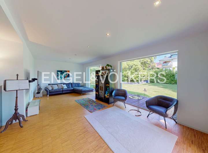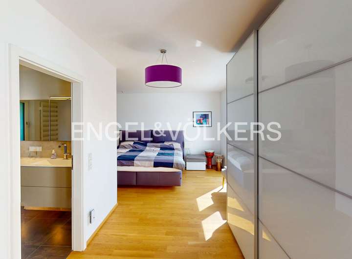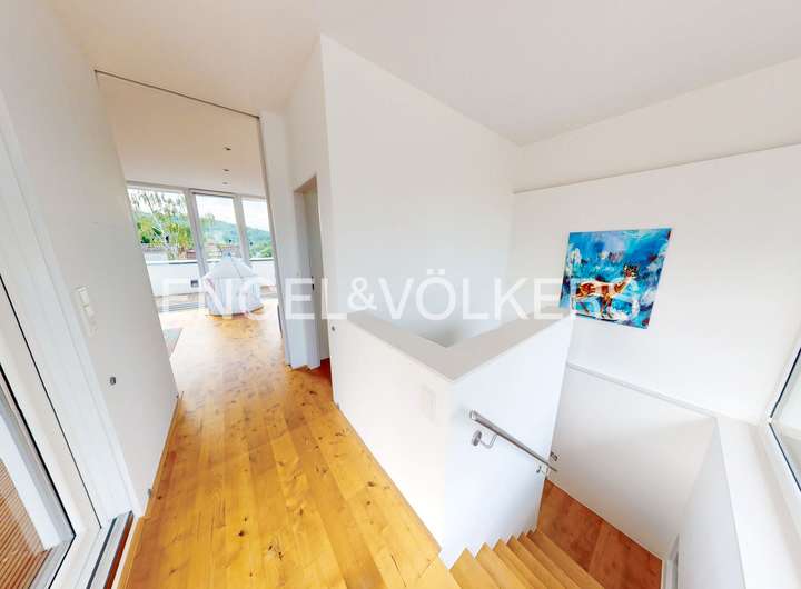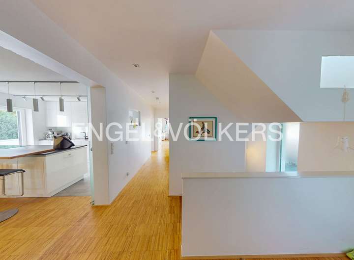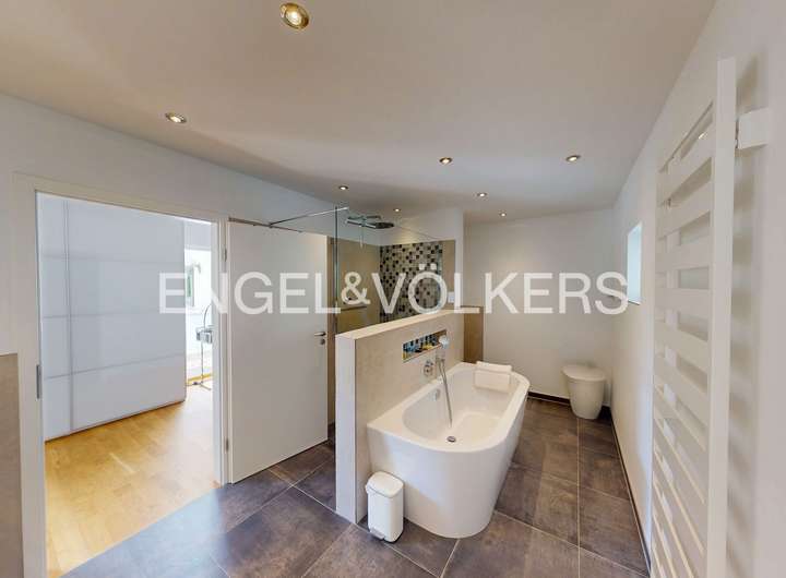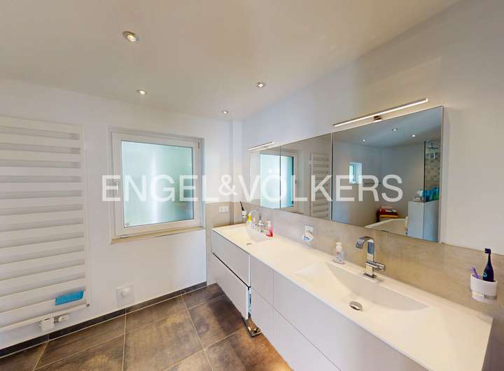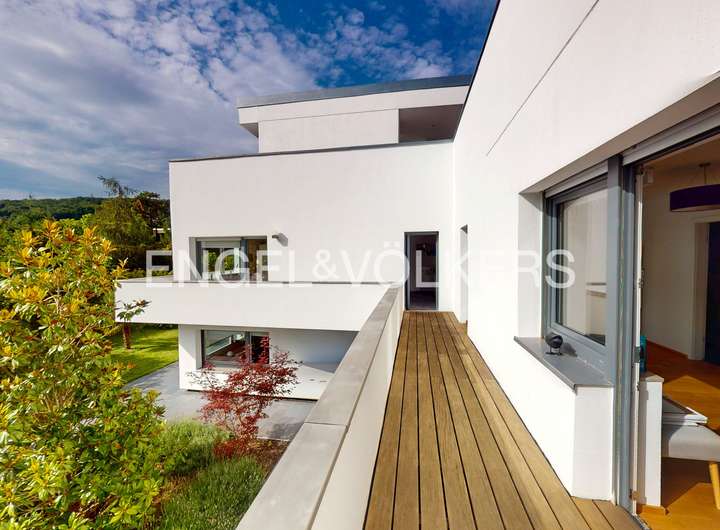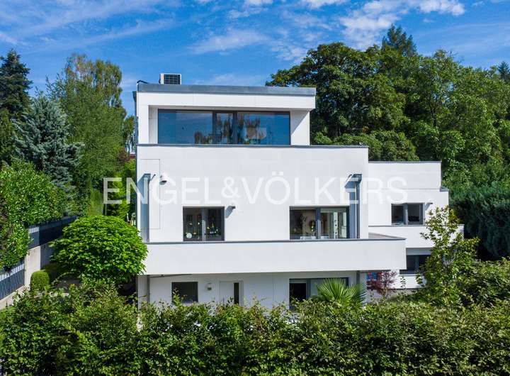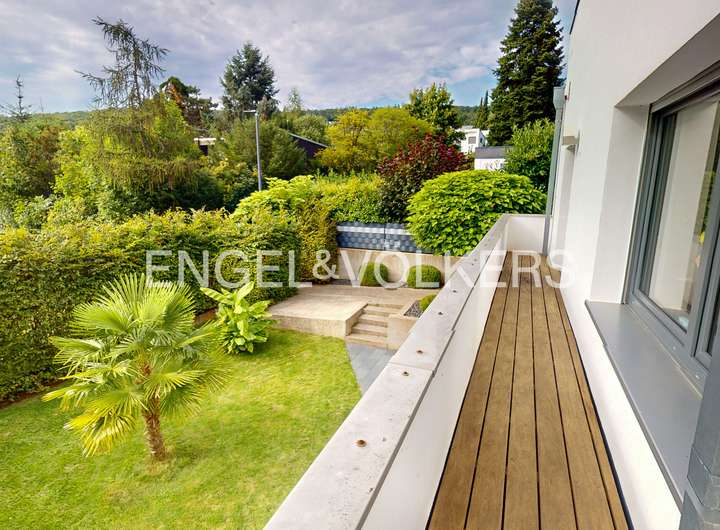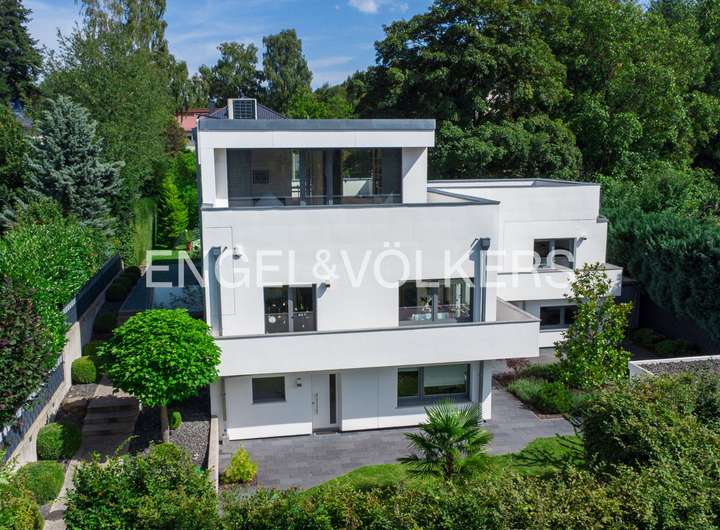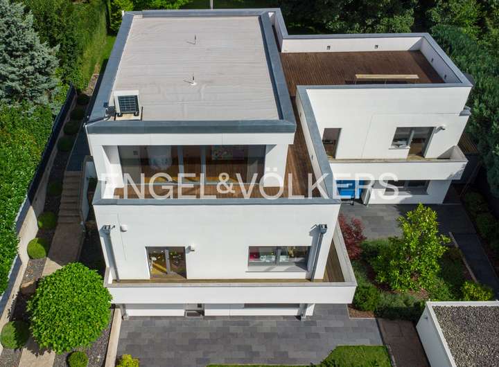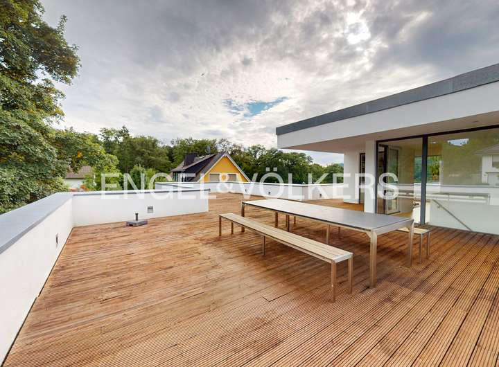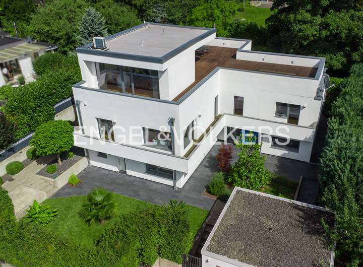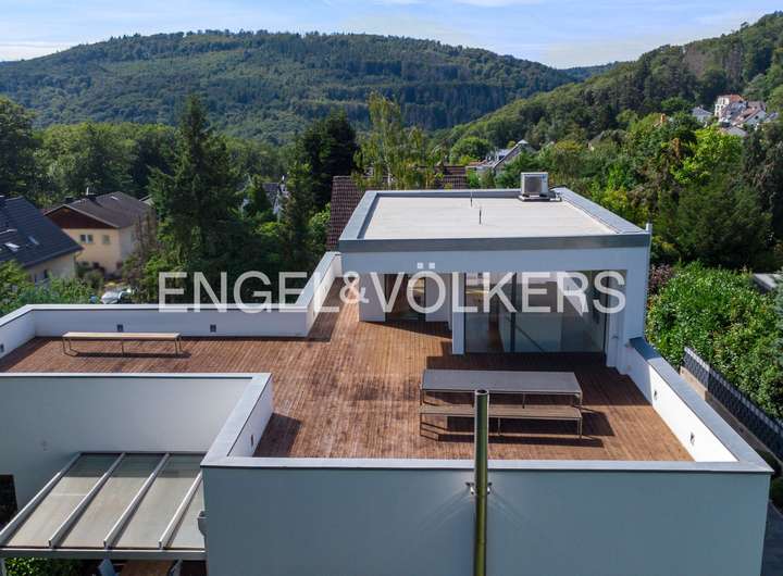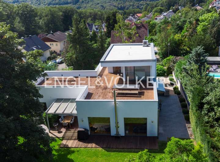 Diese moderne Bauhaus-Villa wurde im Jahr 2008 auf einem großzügigen, terrassierten Grundstück von 1117 m² errichtet und bietet angenehme Privatsphäre. Über die letzten Jahre wurde das Domizil hochwertig modernisiert und energetisch aufgewertet. Es liegt in ruhiger Wohnlage von Schlangenbad-Georgenborn, vereint die Nähe zur Natur und die schnelle Anbindung in die umliegenden Städte. Auf ca 350 m² Wohnfläche erhält Wohnen eine ganz neue Bedeutung. Treten Sie ein und lassen Sie die schöne Architektur, das lichtdurchflutete Raumprogramm, die erlesene Ausstattung und das moderne Design auf sich wirken. Das Erdgeschoss offeriert Ihnen das großzügige Entree, den herrlichen Wohn-/ Essbereich mit Kamin, raumhoher Verglasung und Blick in den schön angelegten Garten. Die offene Designerküche integriert sich bestens. Hier begeistern und verwöhnen Sie Ihre Familie und Ihre Gäste! An warmen Sommerabenden öffnen Sie die Fensterfront und genießen die Ruhe. Vom Wohnbereich aus gelangen Sie in den Elternbereich mit einem ruhigen Schlafzimmer, dem Zugang zum umlaufenden Balkon und einem luxuriösen Bad en Suite, das mit Wanne und Dusche ausgestattet ist. Auf der gegenüberliegenden Seite befindet sich der Kinderbereich mit zwei hellen, freundlichen Zimmern und einem separaten Kinderbad. Eine schön gestaltete Treppe führt nach oben und bietet Ihnen einen weiteren, ansprechenden Wohnraum, ein Gäste-WC und den Zugang zu der ca 160m² großen Dachterrasse, ein absolutes Highlight mit traumhaftem Fernblick. Sie werden staunen! Das gesamte Interieur ist „High End“ und spiegelt sich stilsicher im ganzen Anwesen wieder. Das Gartengeschoss gliedert sich in zwei neuwertige Einliegerwohnungen mit separaten Eingängen. Hier sind unterschiedliche Wohnmodelle umsetzbar. Des Weiteren befinden sich auf dieser Ebene der praktische Hauswirtschafts-, der Technik-, und der Abstellraum. Der Saunabereich bietet hier zusätzliche Entspannung. Ihre Fahrzeuge parken Sie bequem in der Doppelgarage, die mit einer Wallbox ausgestattet ist. Dieses Anwesen bietet Ihnen ein hohes Maß an Lebensqualität und Wohlfühlambiente, vereint mit technischen Raffinessen. Der weitläufige Garten, das Baumhaus für die Kids, die unterschiedlichen Terrassen und die Möglichkeit im Grünen zu verweilen, vollenden dieses luxuriöse Zuhause!