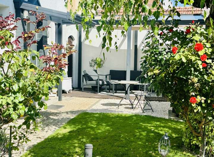 Seinen Charme bezieht dieses Refugium nicht nur aus dem großzügigen Entrée, sondern auch durch die Deckenhöhe von 2,85 m. Mit seinen modernen und hell gestalteten Wohnräumen bietet dieses Haus jede Menge Platz zum Wohlfühlen für die ganze Familie. Das top gepflegte und äußerst geschmackvoll angelegte Grundstück mit zwei Terrassen garantiert absolute Privatsphäre. Ein perfektes Zuhause für alle, die kurze Wege in die Stadt schätzen, aber dennoch ruhig und in grüner Lage wohnen wollen.