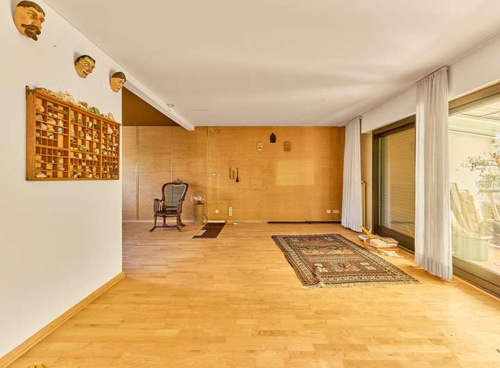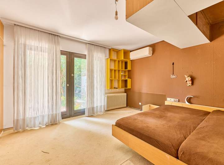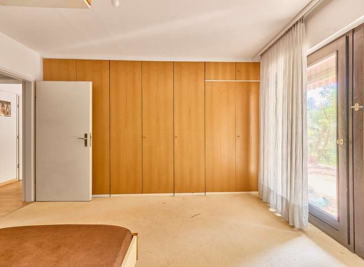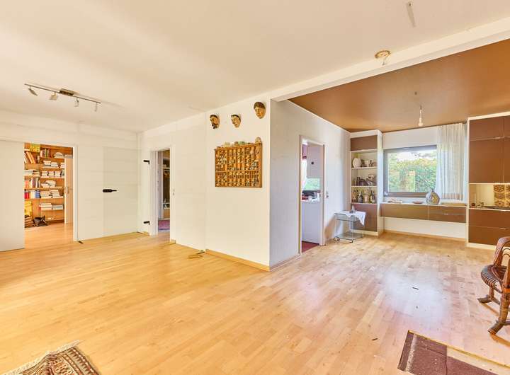 Die untere Wohneinheit von ca. 140m² ist aktuell leerstehend und bietet mit ihren vier gut geschnittenen und dem großzügigen Wintergarten Zimmern viel Raum für individuelle Wohnträume. Große Fensterflächen lassen viel Licht herein und schaffen eine angenehme Wohnatmosphäre. Durch den direkten Zugang zum uneinsehbaren Garten wird das Wohnen hier zu einem besonderen Erlebnis – ideal für Familien, Paare oder auch als großzügige Einzelwohnung mit Büro oder Atelier.