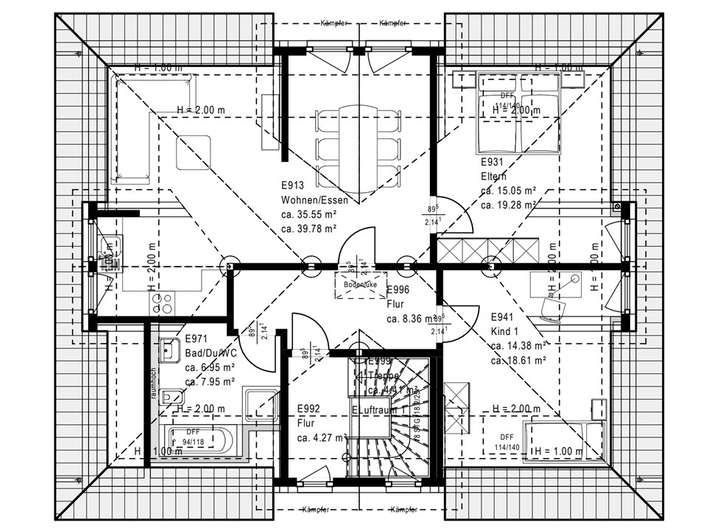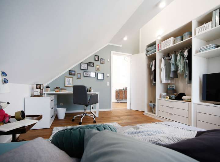 Ob als Generationenhaus, Zwei-Familienhaus oder andere Wohnkonstellation: Hier lässt sich Wohnraum in Form von zwei Wohneinheiten flexibel nutzen. Otto’s Beste 9 überzeugt durch zeitloses Design und durchdachte Grundrissgestaltung. Der großzügige Wohn-Ess-Bereich mit angeschlossener Küche punktet durch eine offen gehaltene Raumaufteilung sowie durch die bodentiefen Fenster, die viel natürliches Licht in die Räume lassen und so eine helle Atmosphäre schaffen. Weiterhin befinden sich auf den rund 112 m² Wohnfläche des Erdgeschosses zwei flexibel nutzbare Schlafzimmer, zwischen das denen geräumige Bad mit Wanne, Dusche und WC direkt erreichbar ist. Über den Eingangsbereich können der Hauswirtschaftsraum sowie die Treppe zur zweiten Wohneinheit im Dachgeschoss (Wohnfläche ca. 85 m²) erreicht werden. Auch hier bietet der Wohn-Ess-Bereich ausreichend Platz zum Verweilen und die großen Fensterfronten einen herrlichen Blick ins Freie. Die große Wohnfläche bietet zudem ein geräumiges Schlaf- und Kinderzimmer sowie ein großes Bad.