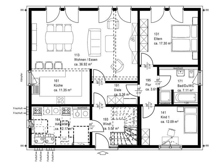 + kontrollierte Be- / Entlüftung mit Wärmerückgewinnung