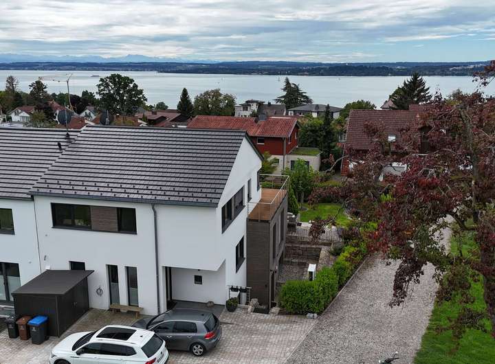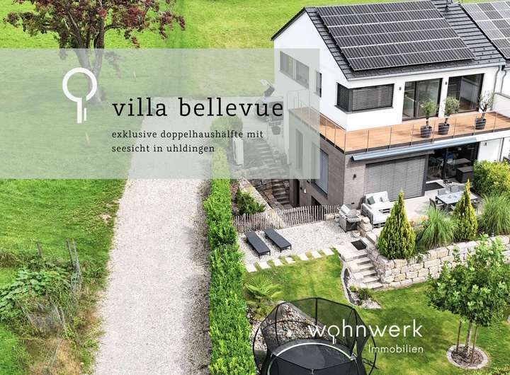 Willkommen in der Villa Bellevue, einer außergewöhnlichen Doppelhaushälfte in Bestlage von Uhldingen-Mühlhofen. Hier verbinden sich moderne Architektur, edle Materialien und eine unvergleichliche Lage mit 180°-Blick auf den Bodensee und die dahinterliegende Bergwelt.