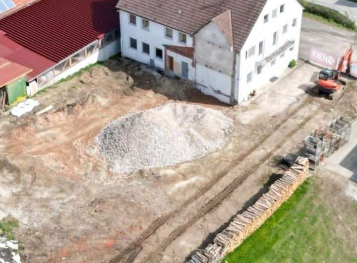 Das große Haus mit 3 Etagen (zuzüglich Kellergeschoß) und riesiger Grundstück befinden sich in einem Mischgebiet in Aichen (mehr als 1000 Einwohner) im Landkreis Günzburg, nur 36 km von Augsburg entfernt.