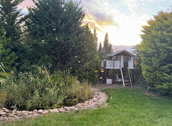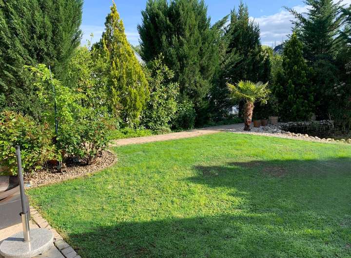 Freuen Sie sich auf eine Rarität auf dem Wiesbadener Wohnungsmarkt. Hier wird der Traum vom naturnahen Wohnen und zugleich städtischen Leben Wirklichkeit. Das gut gepflegte KFW-Niedrigenergie-Einfamilienhaus bietet Platz für eine Familie, die die Nähe zur Innenstadt, Schulen, Nah- und Fernverkehr und Natur genießen möchte. Die durchdachten Grundrisse mit großem Wohn-Essbereich und offener Küche lassen keine Wünsche offen. Große Fensterflächen mit 3-Scheiben-Verglasung sorgen für lichtdurchflutete Räume und geben den Blick frei auf einen geschmackvoll angelegten Garten mit großer Rasenfläche, Teich und Kindergartenhaus. Von dem Wohn-Essbereich gelangen Sie über die großen Fensterschiebetüren auf die ca. 12 Meter breite Terrasse, die Platz für einen großen Esstisch und eine großzügige Lounge bietet. Die eingebauten Jalousien und Markisen spenden im Sommer Schatten. Dank der ausgezeichneten Isolierung des Energieeffizienzhauses mit KFW 70 Standard in Massivbauweise bleiben die Räume im Sommer angenehm kühl und im Winter wohltuend warm. Aus dem Obergeschoss mit großem Balkon mit Glasgeländer genießen Sie den Blick über Wiesbaden. Das Grundstück mit perfekter Südausrichtung lässt Sie von morgens bis abends die Sonne genießen. Bei Bedarf kann noch ein weiteres Bad eingebaut werden (Anschlüsse sind vorhanden) und durch eine kostengünstige Trockenbau-Wand im Obergeschosses zwei weitere Schlafzimmer geschaffen werden.