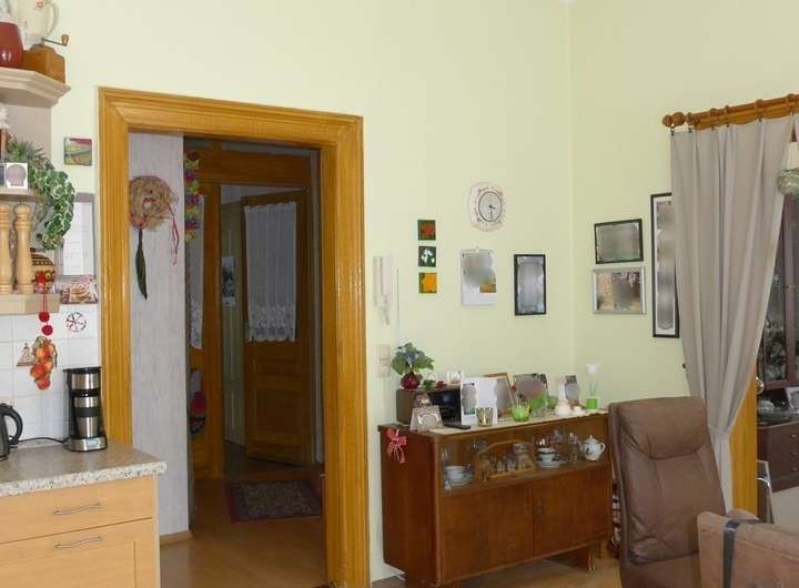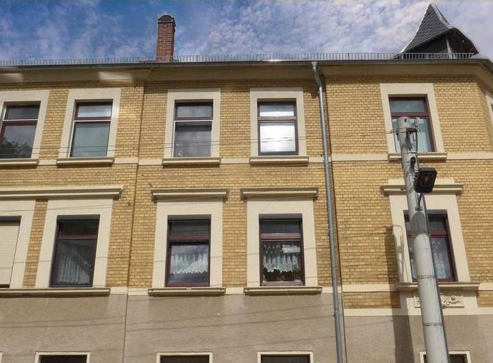Das vermutlich vor 1900 errichtete Mehrfamilieneckhaus ist sanierungsbedürftig, zum Teil unterkellert und steht laut Denkmalschutzkarte nicht unter Deckmalschutz. Im Erdgeschoss gab es früher eine Fleischerei, teilweise erkennt man davon noch heute Strukturen im Haus und in den Anbauten. In den 1990er-Jahren erfolgte der Haustür- und Heizungseinbau (Therme ca. 1992, Warmwasserbereiter 2019). Ab 2000 Fenster, Elektrik und Bäder im 1. und 2. OG erneuert, ca. 2008 zum Großteil neue Dacheindeckung, ca. 2009 Vollwärmeschutz Giebelseite. Die Trockenlegung mit dem Drymat-System läuft seit 2021. Es besteht weiterer Sanierungsbedarf. Vor allem sind die verrosteten Stahlträger im Keller zu behandeln, zu erneuern oder abzufangen und bei Bedarf die Räume im EG zu modernisieren. Im Erdgeschoss gab es nach Schließung der Fleischerei eine bis ca. 2005 genutzte 2-Raum-Wohnung mit ca. 60 m² Wohnfläche. Im 1. OG nutzt noch der Eigentümer bis zum Verkauf eine 4-Raum-Wohnung mit ca. 90 m². Teils sind gefangene Zimmer vorhanden, d. h., man kommt durch das Esszimmer in ein kleines Kinderzimmer, von der Küche ins Wohnzimmer und vom Bad in das Schlafzimmer. Im 2. OG existiert eine vermietete, gleichgroße Wohnung mit einem gefangenen Zimmer. Das Dachgeschoss dient nur zum Abstellen. Eventuell kann hier noch eine weitere Wohnung entstehen, das Vorliegen einer Baugenehmigung vorausgesetzt. Das ca. 260 m² große Grundstück ist voll erschlossen und zusätzlich mit einer Garage und Nebengelass bebaut.